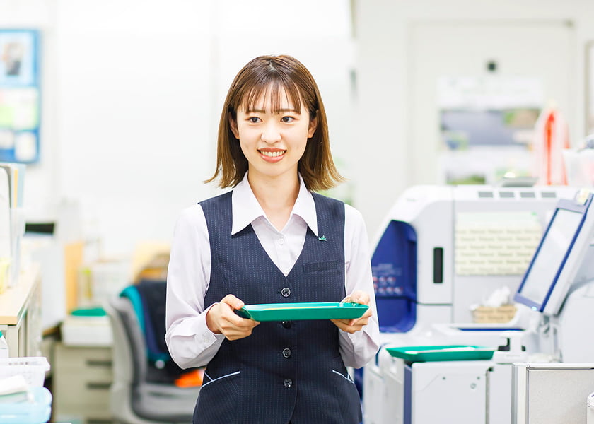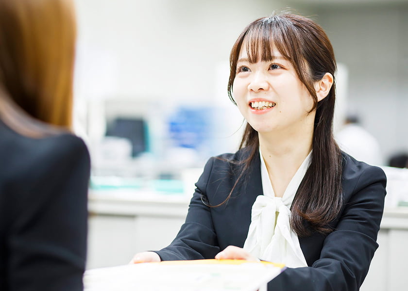 窓口に来店された組合員・利用者に対し、貯金をはじめローンや年金などについて相談を受け、適切な商品提案を行います。