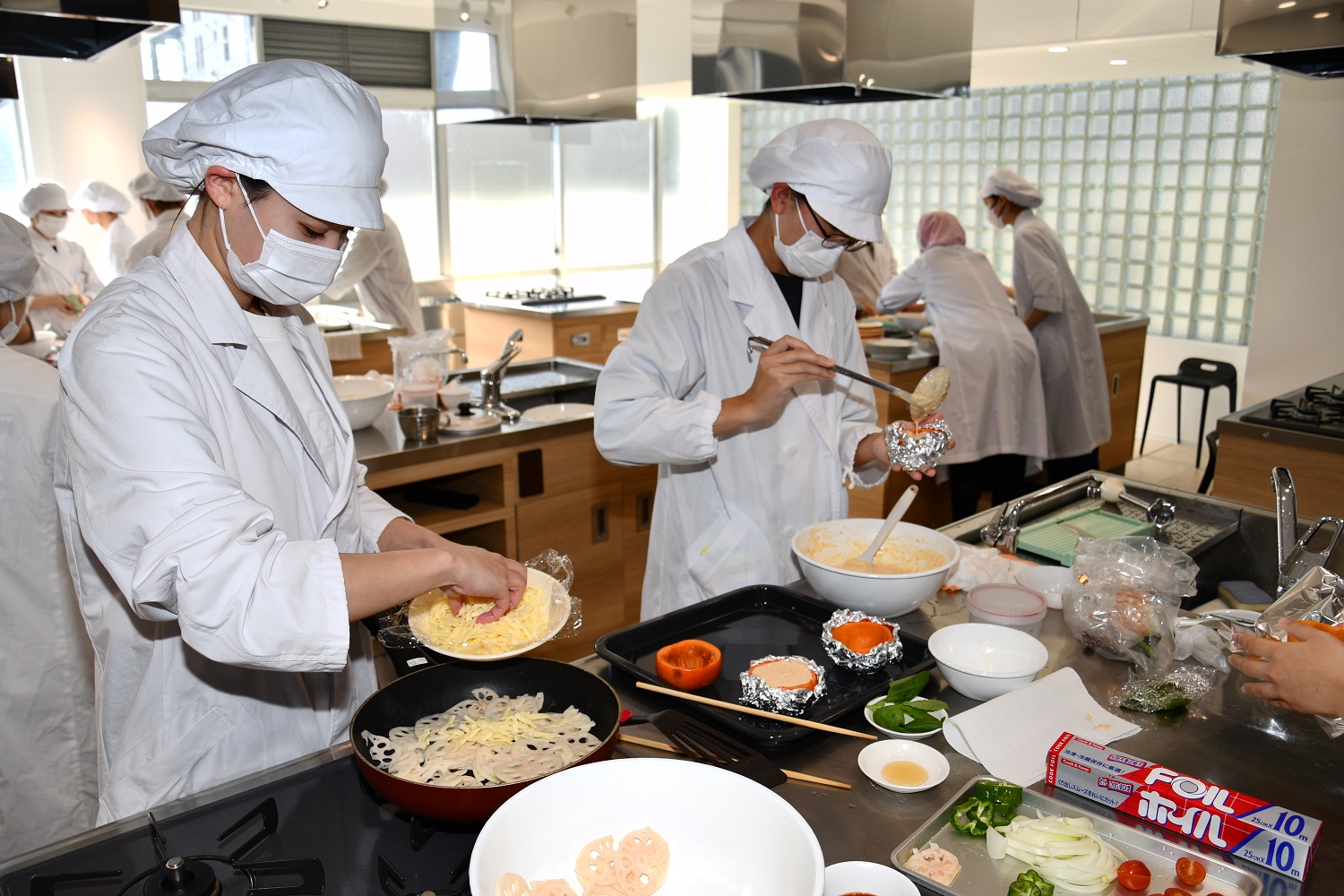 愛知みずほ短期大学は、JAあいち海部とJA全農岐阜と連携して行う、特産品を使ったレシピの開発会を開きました。生活科学科2年生24人が6班に分かれて、愛西市産のレンコンや柿「富有」を題材にレシピを考案し、合計12品を調理しました。
